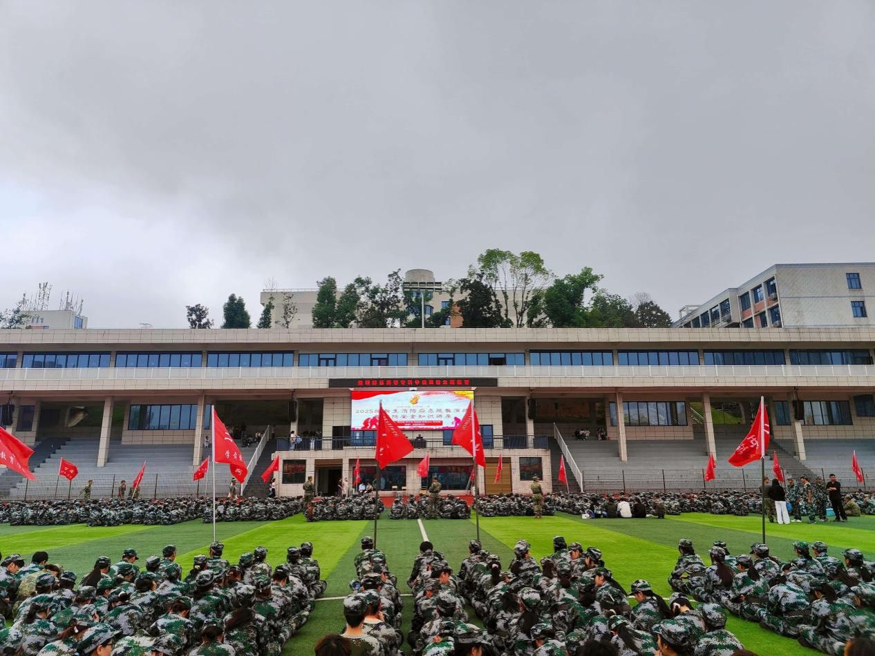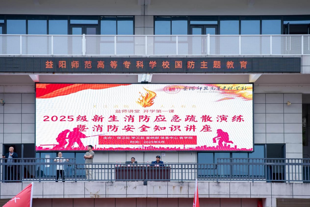 为切实提升新生的消防安全意识和应急避险能力,筑牢校园安全防线,9月29日下午,益阳师范高等专科学校在田径场举行了2025级新生消防应急疏散演练暨消防安全知识讲座。全体1700名新生共同参与了此次活动。学校党委委员、副校长段学文出席活动并讲话,活动特邀益阳市消防救援支队赫山大队宣传组组长徐建国担任主讲嘉宾及演练指导。