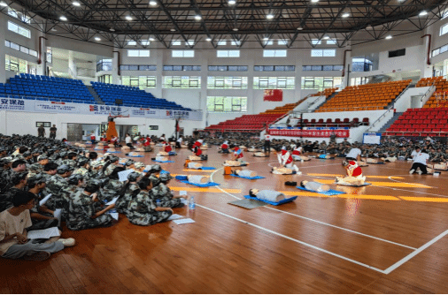 培训现场,指导老师清晰讲述心肺复苏(CPR)要点,一对一纠正跪姿、按压位置,还模拟“校园晕倒”场景,让大家练熟“判断-呼救-CPR-AED使用”全流程。