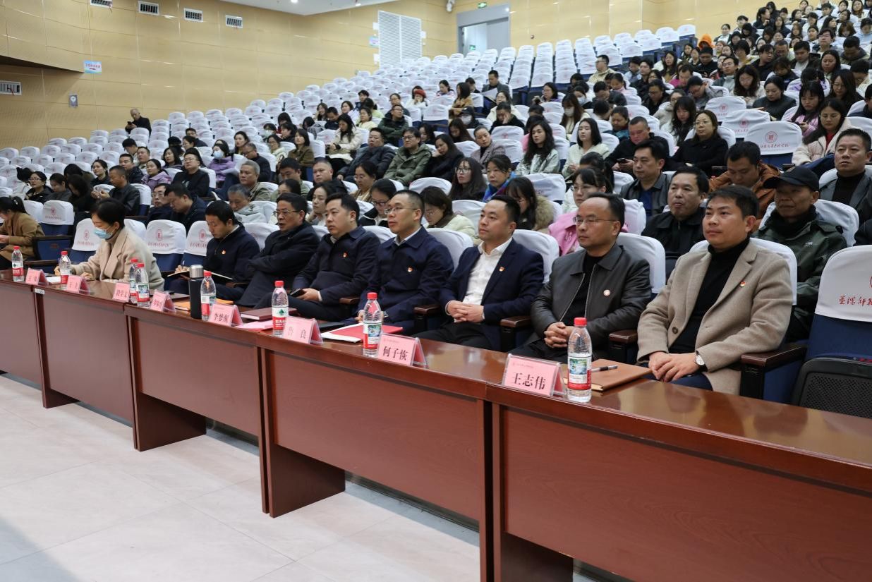 为深入学习贯彻党的二十届四中全会精神,切实把全校师生的思想和行动统一到党中央决策部署上来,12月17日下午,我校在益美楼报告厅举行学习贯彻党的二十届四中全会精神宣讲会。市直机关工委分管日常工作的副书记颜咏涛受邀担任主讲人,学校党委书记李梦醒主持会议,学校领导班子成员、全体教职员工及学生党员、入党积极分子参加学习。